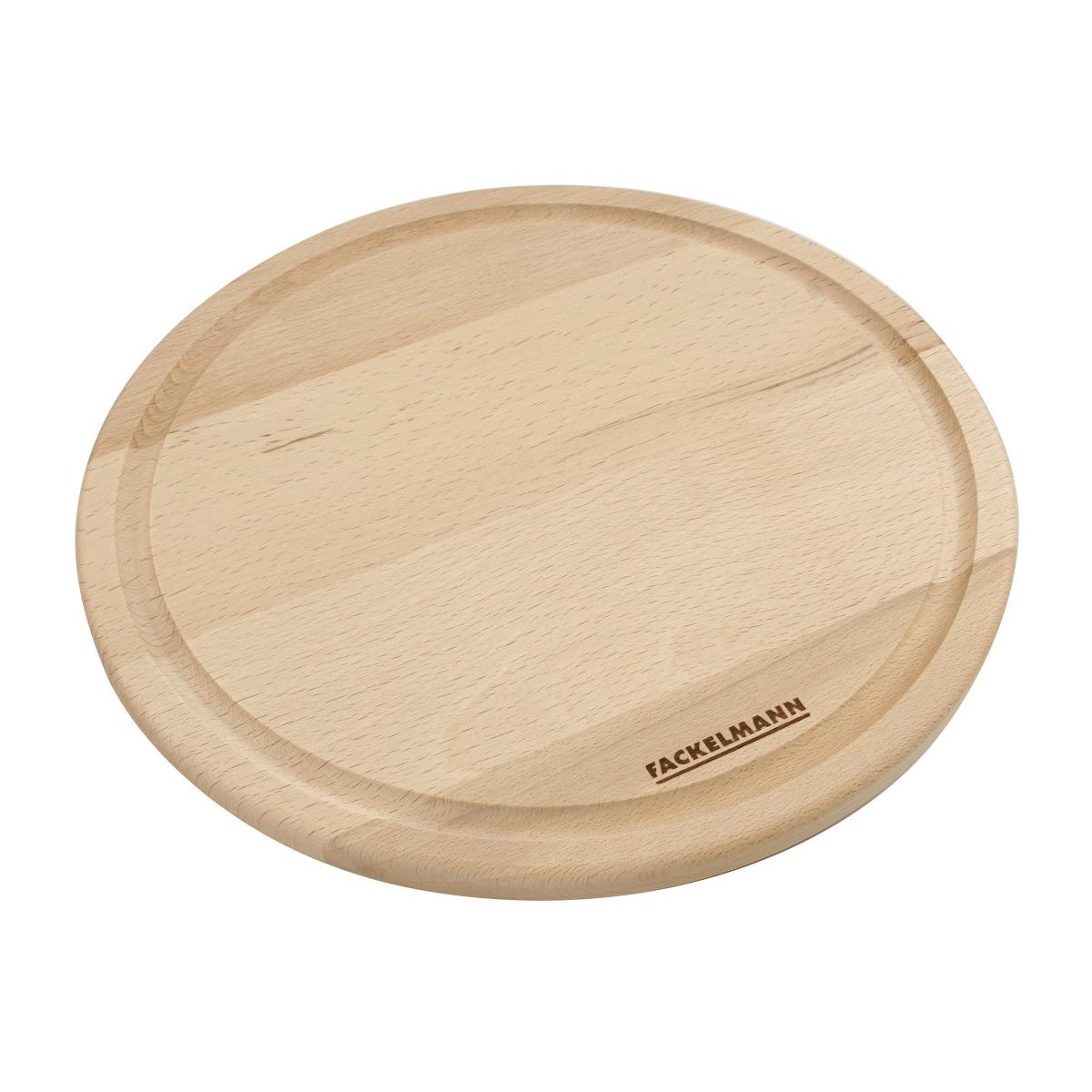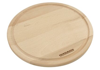 Mit dem modernen Vesperbrett von Fackelmann halten Funktionalität und attraktives Design Einzug in deiner Küche. Das runde Brett aus hochwertigem FSC™-zertifiziertem Buchenholz hat einen Durchmesser von etwa 24 cm und bietet die ideale Grundlage zum Schneiden und Anrichten jeglicher Lebensmittel. Dank der praktischen Saftrille werden eventuell austretende Flüssigkeiten aufgefangen. Das Vesperbrett sollte unter fließendem Wasser mit der Hand gereinigt und regelmäßig eingeölt werden. Schneidbretter sind…