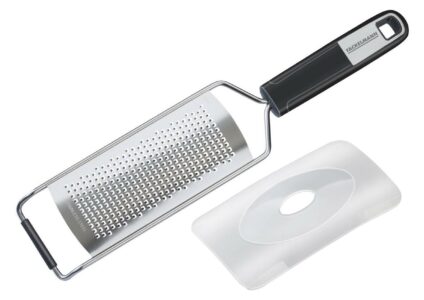 Die feine Handreibe Sense (30 cm) von Fackelmann ist, dank der extra scharfen und fein geätzten Edelstahl-Reibefläche, der ideale Helfer für das mühelose Reiben von z. B. Ingwer, Zitronen- und Limettenschale oder auch Schokolade. Dank der Antirutschfläche kann die Reibe während des Reibevorgangs problemlos und ohne zu verrutschen auf ein Schneidebrett oder einen Teller gestellt werden. Der praktische Klingenschutz sorgt dafür, dass die Reibefläche unversehrt und scharf bleibt, zudem kann die Handreibe…
