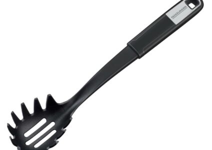 Der Spaghettilöffel Sense von Fackelmann ist der ideale Helfer für Pasta-Freunde. Dank der kleinen Zinken bleiben längere Nudeln wie Spaghetti oder Bandnudeln ohne zu verklumpen im Löffel hängen und können so sicher aus dem Topf geholt werden. Das überschüssige Kochwasser läuft ganz einfach durch die Schlitze in der Mitte des Löffels ab. Der hochwertige Soft-Touch-Griff mit Edelstahl-Kappe und eingraviertem Logo liegt angenehm in der Hand. Das Funktionsteil aus hochwertigem 3H-Material ist…