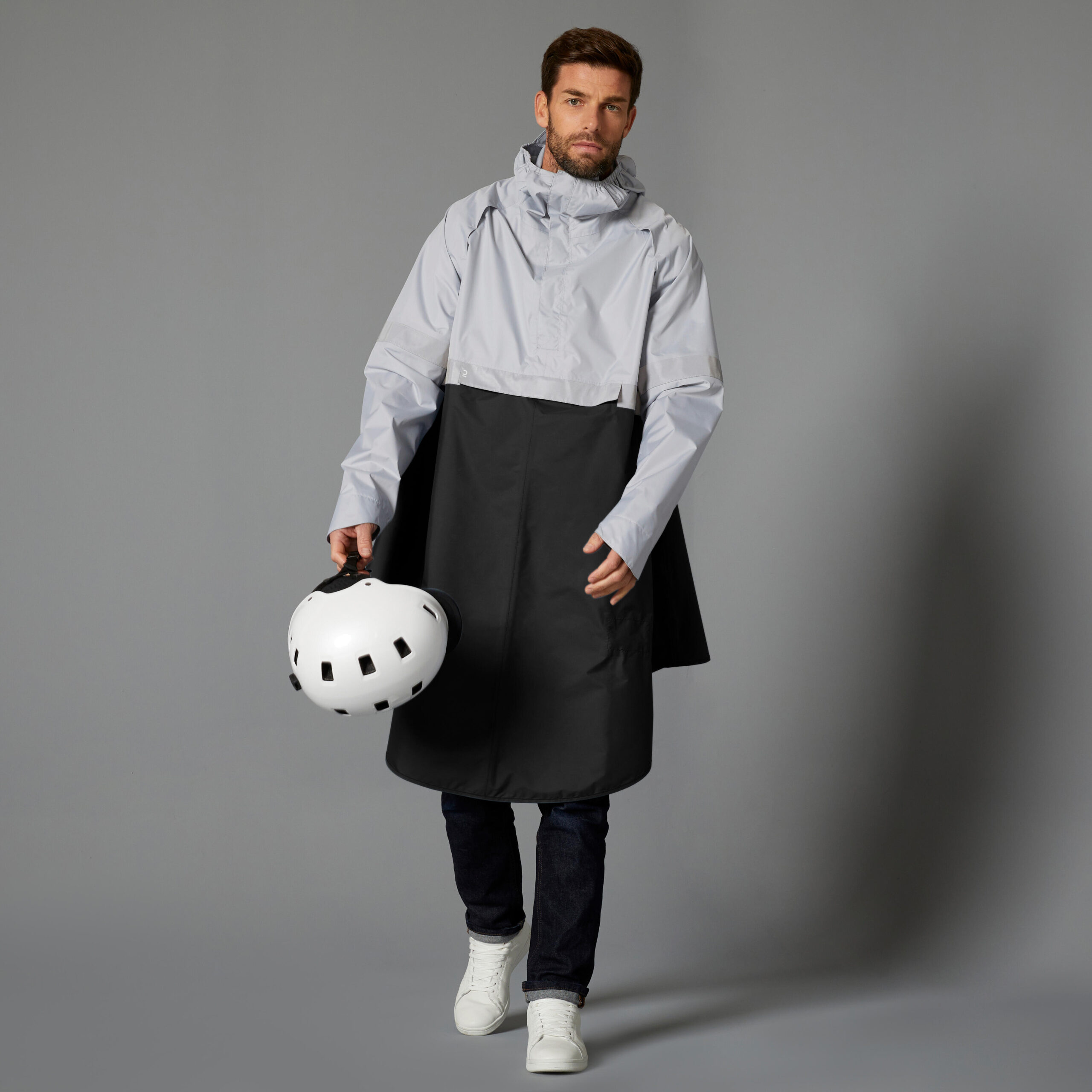 Fahrrad Regenponcho City 540 Sichtbarkeit bei Nacht schwarz/grau
