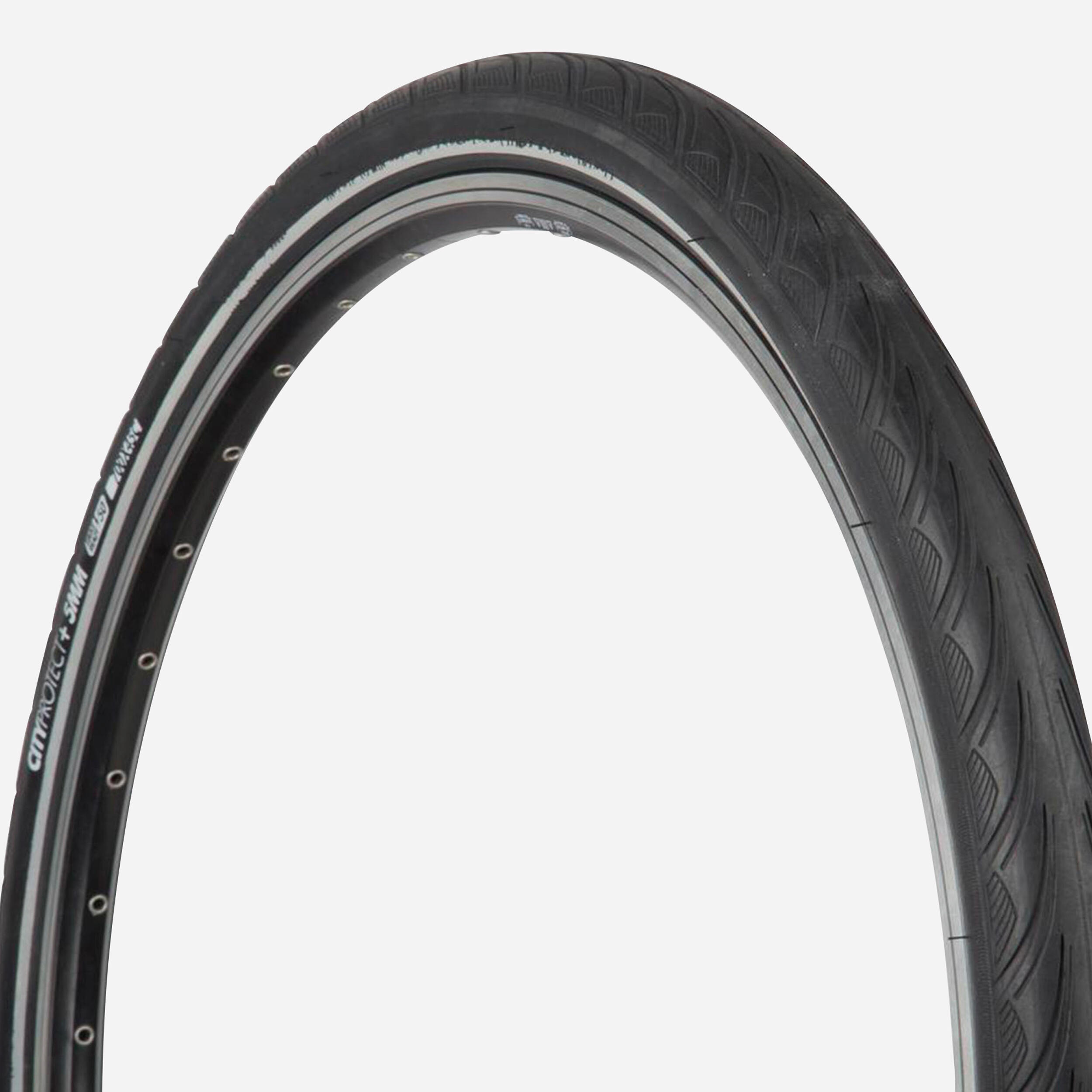Dieser City-Reifen ist auch für E-Bikes geeignet. Er ist mit einer 5 mm starken Pannenschutzeinlage ausgestattet. Durchstoßbeständigkeit::Technologie Protect+, 5 mm HD-Elastomer-Verstärkung|Wirkungsgrad::Leistungsstarker Reifen mit Slick-Eigenschaften|Sichtbarkeit::Seitliche Reflektorstreifen erhöhen die Sichtbarkeit im Straßenverkehr.