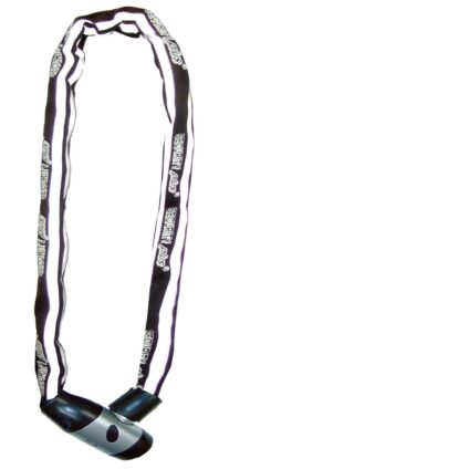 Sehr leicht zu transportierendes Schloss. Reflektierende Ummantelung für mehr Sicherheit bei Dunkelheit. auch zum Umhängen um den Oberkörper geeignet. 6mm Kettenglieder. Schlosskopf 360° drehbar|Gewebecover mit Reflexstreifen