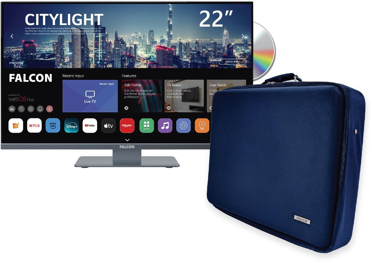 Falcon WebOS SMART Camping TV 22 (55cm) + Tragetasche, DVD, Full HD, Wifi, BT 5.0, Triple Tuner S2/T2C