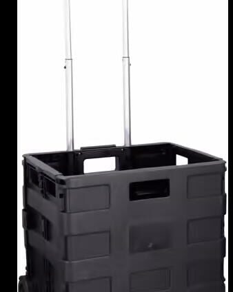 Der faltbare Transport-Trolley ist optimal für den Einkauf und den Transport von schweren Gegenständen. Mit zwei Gummirädern und ausziehbarem Handgriff.Der Transport-Trolley kann leicht auseinander- und zusammengefaltet werden.Mit zwei Verschlüssen versehen, um die zusammengeklappte Kiste zu sichern.Belastbar bis 25 kg.Länge Handgriff max. 83,5 cm.Technische Daten:Länge: 33 cmBreite / Tiefe: 38 cmHöhe: 83,5 cm