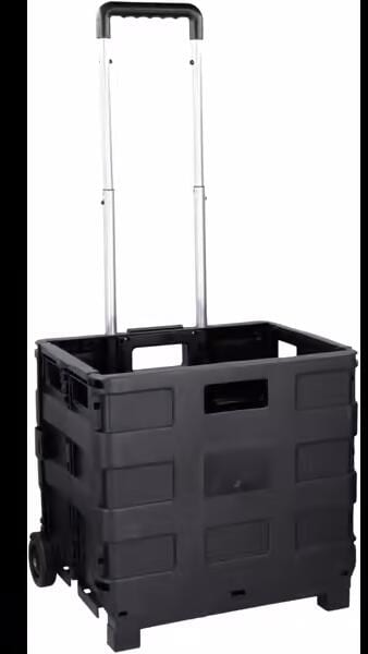 Der faltbare Transport-Trolley ist optimal für den Einkauf und den Transport von schweren Gegenständen. Mit zwei Gummirädern und ausziehbarem Handgriff.Der Transport-Trolley kann leicht auseinander- und zusammengefaltet werden.Mit zwei Verschlüssen versehen, um die zusammengeklappte Kiste zu sichern.Belastbar bis 25 kg.Länge Handgriff max. 83,5 cm.Technische Daten:Länge: 33 cmBreite / Tiefe: 38 cmHöhe: 83,5 cm