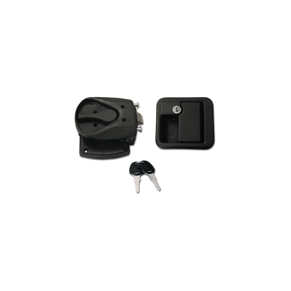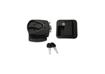 Komplettes Türschloss für Wohmobile und Wohnwagen, schwarzer Außengriff mit M1 HSC Schlüssel und Zylinder. Technische Daten: M1 CEE-Schloss FF-System HSC (New System) Breite: 120 mm Höhe: 130 mm Farbe: schwarz Lieferumfang: Schloss Innen & Außen 2x Schlüssel & Zylinder