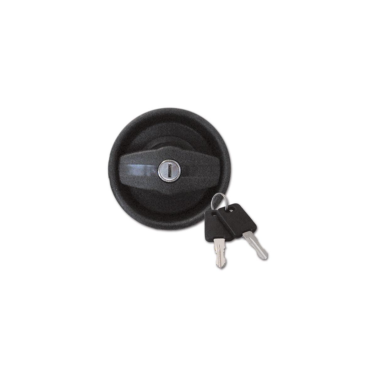 Schwarzes Fallenschloss zur Nachrüstung oder Neumontage. Mit vorgerüsteten Zylindern für ein gleichschließendes System in Caravans. Technische Daten: Farbe: schwarz Durchmesser: 100 mm Schließsystem: FF-System FF1 Lieferumfang: Türschloss (außen) mit Schlüsseln und Zylinder