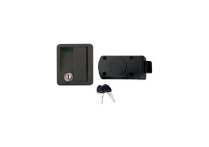 FAP – Komplettes Klappenschloss in schwarz, mit ZADI Schlüssel und Zylinder. Technische Daten: System STS & ZADI M1 CEE-Schloss Innen- & Außenteil Breite: 85 mm Höhe: 96 mm Farbe: Schwarz