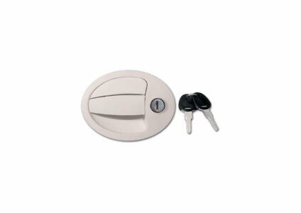 Kleines ovales Schloss für die Kofferklappe, komplett mit HSC Zylinder und zwei New System Schlüsseln. Technische Daten: FF-System: HSC (FAP New System) Farbe: weiß Innenanschlag 14 mm. äußeres Schlossteil Maße Griff: 130 x 98 mm Maße Innen: 120 x 56 mm Lieferumfang: Schloss (aussen) mit Zylinder & Schlüssel