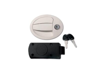 Kleines ovales Schloss für die Kofferklappe, komplett mit HSC Zylinder und zwei New System Schlüsseln. Technische Daten: FF-System: HSC (FAP New System) Farbe: weiß Innenanschlag 14 mm. Inneres & äußeres Schlossteil Maße Griff: 130 x 98 mm Maße Innen: 120 x 56 mm Lieferumfang: Komplettes Schloss mit Zylinder & Schlüssel