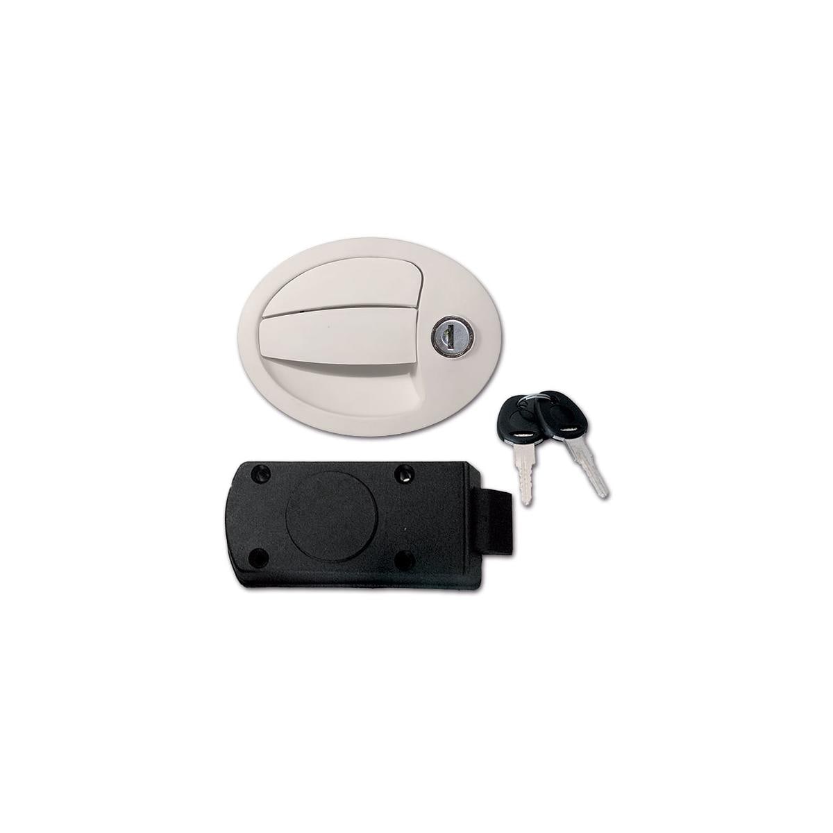 FAP 1203 Klappenschloss, FF-System HSC, inkl. Schlüssel & Zylinder, oval, klein, komplett, weiß