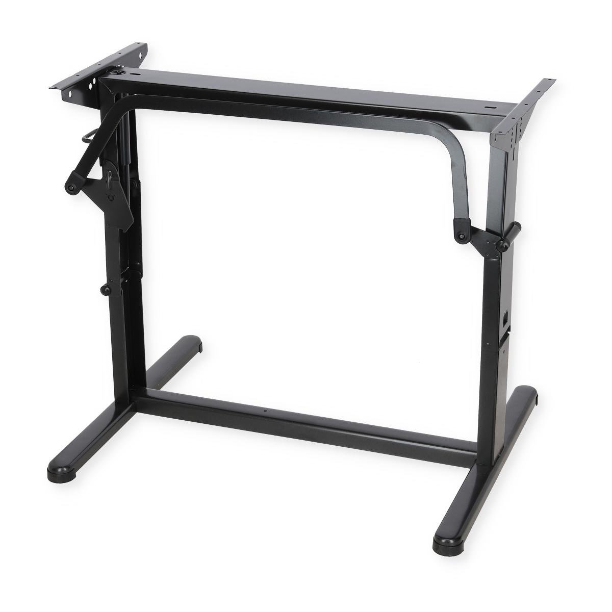 Das Metallgestell ist trotz seiner Stabilität ein ausgesprochenes Leichtgewicht. Die Tischplattenhöhe kann über die Plattenträger eingestelltwerden. Mit hochgelegter Verbindungsstrebe, für größere Beinfreiheit. Einfache Bedienung: Die Platte wird durch Tastendruck gehoben oder gesenkt. Fußabstand: 750 mm Fußbreite: 600 mm Betthöhe: 310 – 350 mm (ohne Tischplatte) Hub: 350 mm Gestellhöhe: 700 mm Tiefgestellt: 300 mm Höhenausgleich: max. 50 mm Gewicht ca.7,8kg Farbe: anthrazit (RAL 7016)