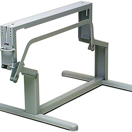 Das Metallgestell ist trotz seiner Stabilität ein ausgesprochenesLeichtgewicht. Die Tischplattenhöhe kann über die Plattenträger eingestelltwerden. Mit hochgelegter Verbindungsstrebe, für größere Beinfreiheit. Einfache Bedienung: Die Platte wird durch Tastendruck gehoben oder gesenkt. Fußabstand: 750 mm Fußbreite: 600 mm Betthöhe: 310 – 350 mm (ohne Tischplatte) Hub: 350 mm Gestellhöhe: 700 mm Tiefgestellt: 300 mm Höhenausgleich: max. 50 mm Gewicht ca.7,8kg Farbe: lichtgrau(RAL 7035)