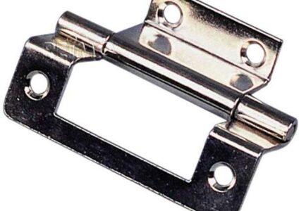 Klappenscharnier, 4 Stück. Sowohl für aufgesetzte als auch eingesetzte Türen und Klappen. Formschöne Alternative zu Klavierband, leichte Montage. Scharnier 50 mm gekröpft. Vernickelt