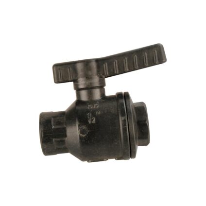Kugelhahn mit beidseitigem Rohrinnengewinde. Gewindeanschluss Technische Daten: Material: Kunststoff Größe: 1/2“ Maße (L x B x H): 17,2 × 11,8 × 4,6 cm Gewicht: 86 g Farbe: schwarz