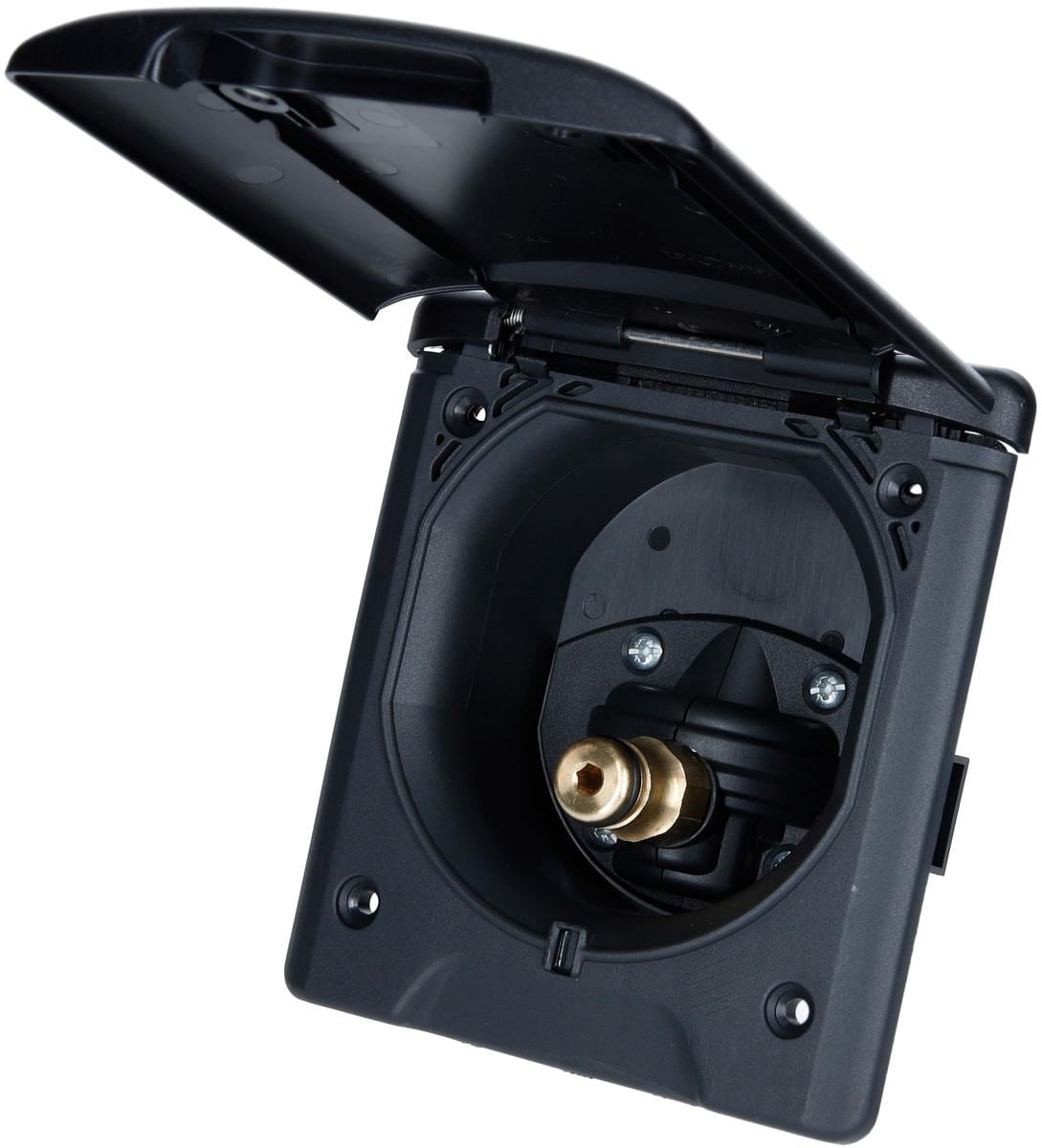 City-Wasseranschluss, Thermoplast mit Druckminderer und Klappdeckel mit Magnetverschluss, Wasserdruck wird auf 1,1 bar herunter geregelt. Mit sicherem Magnet-Deckelverschluss Mit Druckminderer Technische Daten: Farbe: schwarz Gardenakompatibel Maße: 130 x 145 mm Maße Ausschnitt: 85,5 x 90 mm. Montage-Ø 95 mm Gewicht: 490 g