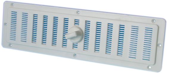 Praktischer und einfach montierbarer Lüfter Technische Daten: Material: Kunststoff 8 Bohrungen (gesenkt) Maße: 250x77mm Farbe: weiß