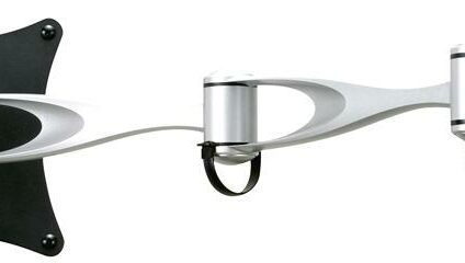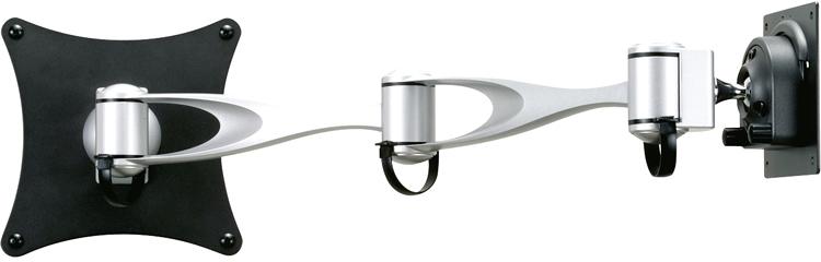 Stylische Halter mit einer maximalen Tragkraft von 8 kg. Im Kopf der TFT-Halterung ist ein Kugelgelenk integriert, durch das der TFT-Bildschirm frei gedreht werden kann. Im Lieferumfang enthalten ist eine Halteplatte für Vesa 75 und Vesa 100, die einfach auf die Halterung aufgesetzt und durch eine Flügelmutter arretiert wird. Dadurch sind die Geräte einfach zu entnehmen und bei Nichtgebrauch zu verstauen. Technische Daten: Drehpunkte: 3 max. Wandabstand: 51 cm max. Tragkraft 8 kg