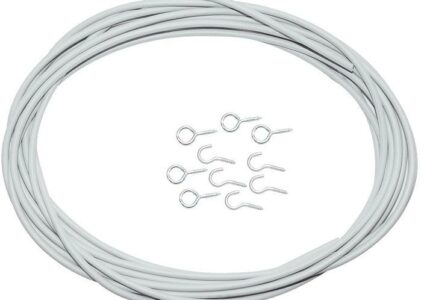 Kunststoffummantelter Spiraldraht. Vielfältig verwendbar. Komplettset mit 10 Haken und 10 Ösen. 10 m Farbe: hellgrau
