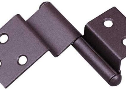 Spezialscharnier für halbaufgesetzte Türen. Schnelle und einfache Montage, robuste Ausführung. Pulverbeschichtet, farblich passend zu den Umleimern. Durch Umstecken rechts und links verwendbar. Spezialscharnier links, 2 Stück. Braun