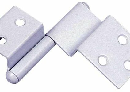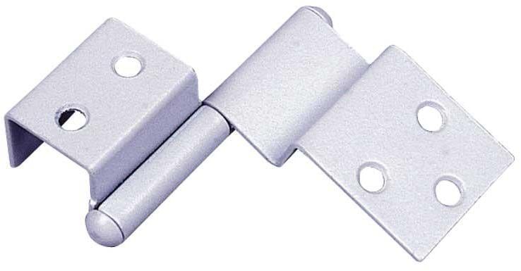 Spezialscharnier für halbaufgesetzte Türen. Schnelle und einfache Montage, robuste Ausführung. Pulverbeschichtet, farblich passend zu den Umleimern. Durch Umstecken rechts und links verwendbar. Spezialscharnier links.
