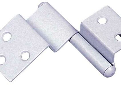 Spezialscharnier für halbaufgesetzte Türen. Schnelle und einfache Montage, robuste Ausführung. Pulverbeschichtet, farblich passend zu den Umleimern. Durch Umstecken rechts und links verwendbar. Spezialscharnier links, 2 Stück. Hellgrau