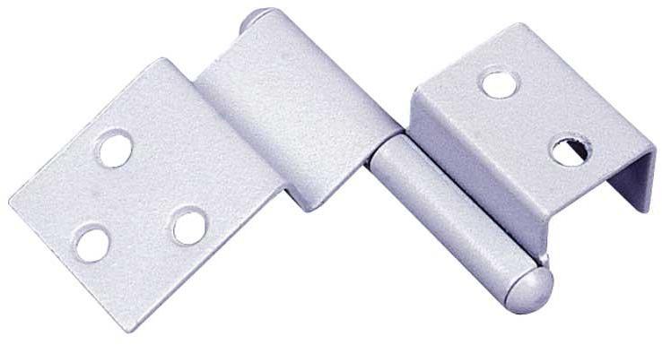 Spezialscharnier für halbaufgesetzte Türen. Schnelle und einfache Montage, robuste Ausführung. Pulverbeschichtet, farblich passend zu den Umleimern. Durch Umstecken rechts und links verwendbar. Spezialscharnier links.