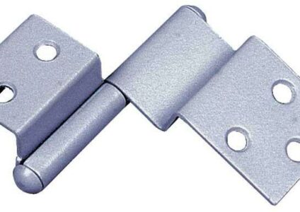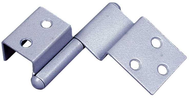 Spezialscharnier für halbaufgesetzte Türen. Schnelle und einfache Montage, robuste Ausführung. Pulverbeschichtet, farblich passend zu den Umleimern. Durch Umstecken rechts und links verwendbar. Spezialscharnier rechts, 2 Stück. Mittelgrau