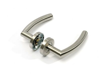Türdrücker in Sichelform aus gebürstetem Stahl. Technische Daten: Packmaß: 20 x 10 x 1 cm Material: Stahl Lieferumfang: 2 Griffe, 2 Rosetten, Vierkant (8 mm) und Befestigungsschrauben.