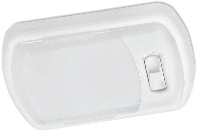 LED-Aufbauleuchte 12 LEDs (warmweiß) mit Schiebeschalter Energieeffizienzklasse: G Gewichteter Energieverbrauch [kWh/1000h]: 4,8 Farbe: weiß Lichtstrom in Lumen: 320 lm Nennleistung: 4,8 W Nennspannung: 12 V Material: Kunststoff Breite: 18,5 cm Höhe: 12,6 cm Tiefe: 2,8 cm Gewicht: 111 g Packmaß: 21 x 14 x 4,5 cm