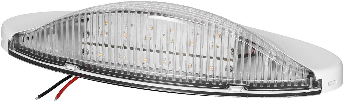 Wasserdichte Vorzeltleuchte mit Kunststoffgehäuse Mit 18 LEDs, 12 V /2 W Gewichteter Energieverbrauch [kWh/1000h]: 2 Energieeffizienzklasse: G Lichtfarbe: warmweiß Außenfarbe: weiß Maße:2,5 x 9 x 25 cm Gewicht:254 g