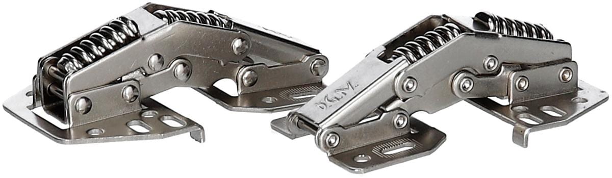 Federscharnier in stabiler Metallausführung. Verfügt über einen 92° Öffnungswinkel. Durch Federn werden die Klappen geöffnet und geschlossen. Einfache Montage durch Langlöcher und mit Anschlag. Stabile Metallausführung 92° Öffnungswinkel Federn halten Klappen offen und geschlossen Einfache Montage Technische Daten: Produktabmessungen: ca. 88 x 65 x 45 mm Gewicht: 2 Stück a ca. 110 g Lieferumfang: 2 Stück Federbandscharnier