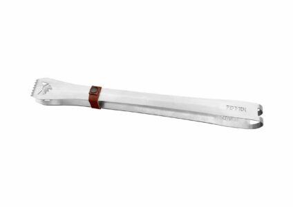 Richtig zupacken, kannst du mit der großen FENNEK Grillzange! Perfekt zum Drehen und Wenden. Besonders griffig durch lasergeschnittene Zacken. Extra lange Ausführung, für sicheren Abstand zu Hitze und Flamme. Im Griff ist ein Flaschenöffner integriert. Mit Lederband als Verschluss, der gleichzeitig zum Aufhängen dient. Auf den Einsatz von Griffen aus Holz oder Kunststoff wurde gezielt verzichtet. Somit ist unsere Grillzange extrem langlebig und spülmaschinenfest. 100% Edelstahl passend für FENNEK Grill,…