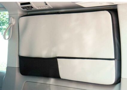 Fenstertasche für VW T5/6 California Ocean, Coast und Beach ab BJ. 2003. Anleitung zur Anbringung – Zuerst die Folie des Schaumstreifens entfernen und auf die obere Kante der Taschen-Rückwand kleben. Die Oberkante der Rückwand mit aufgeklebten Schaumstreifen hinter das VW California Rollo schieben. Die Tasche unten in die Fensternische drücken – fertig. Seitenfenster hinten rechts großes Stauvolumen mit 2 Innenfächern 1 Netz-Außentasche und 1 geschlossene Außentasche für Telefon, Brille, Uhr, Lesestoff…