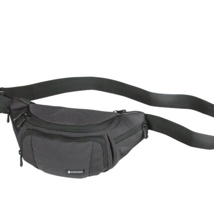 Bauchtasche mit mehreren Taschen aus SLF (Strong Light Fabric) mit großer Öffnung oben und Sicherheitstasche hinten. 2 Seitentaschen am Hüftgurt Fronttasche körperberührte Teile aus atmungsaktivem Mesh-Gewebe interner Organisator Technische Daten: Gewicht: 140 g Maße: 26 x 10 x 10 cm Material: Mesh-Gewebe Farbe: schwarz Lieferumfang: Ferrino Ibis Bauchtasche