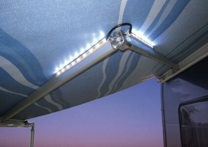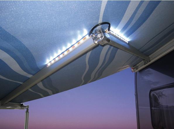 LED Lichtleiste für die Gelenkarme der Markise. Serienmässig mit unterer Halterung zum Ankleben an die Innenseite der Arme. Kompakte Maße und eine ausgeklügelte Verbindung sorgen für eine feste Montage, welche sowohl bei geschlossener als auch bei offener Markise funktioniert. Jede der 4 Lichtleisten hat 9 LED FPunkte und sind für den externen Gebrauch hergestellt. Der Awning Arms LED kann auch für andere Zwecke benutzt werden, um zum Beispiel dunkle Ecken in Ihrem Wohnmobil bestens auszuleuchten….