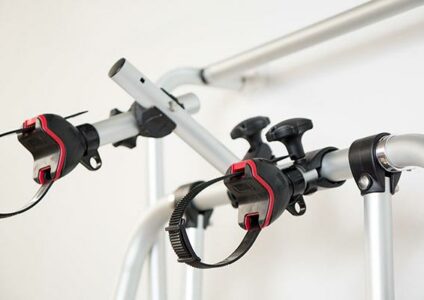 Bike-Block Pro D mit Gelenk Sicheres und schnelles arretieren der Fahrräder mehr Spielraum zum Befestigen der Fahrräder durch einen verstellbaren Gelenkarm Quickverschluss passt auf alle dickeren Fahrradrahmen mit einem Durchmesser von 25 mm bis 100 mm. Befestigung am Fahrradträger passend für Rohre mit einem Durchmesser von 28 mm bis 35 mm. Geeignet für alle Carry-Bike Modelle Farbe: schwarz Serienmäßig Carry-Bike: VW T6 Pro