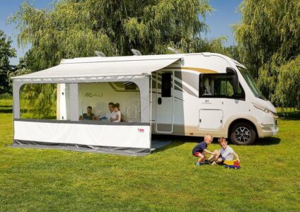 Praktische Vorderwand zur Verlängerung Ein neues System zur Befestigung an den Stützfüßen macht die Befestigung noch praktischer. Die Innenseite der Frontwand ist serienmäßig mit einem Profil ausgestattet, an dem die Vorhänge eingesetzt werden können (optional verfügbar). Aus wasserabweisendem UV-beständigem und waschbarem Vinyl Einfache Montage durch Einziehen in die Kederschiene Technische Daten: Markisentyp: F45, F35, CS Länge A: 100 cm Höhe vom Boden: 225 – 280 cm Packmaß: 36,5 × 14,5 × 38 cm…