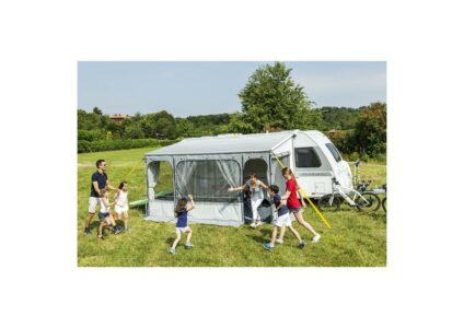 Caravanstore ZIP 550 XL – Die beste Komplettlösung Markise im Futteral mit passendem Vorzelt (nicht im Lieferumfang enthalten). Durch das ZIP System werden die Seitenteile mittels zweier robuster Reißverschlüsse mit dem Markisentuch verbunden. Leicht und schnell aufgebaut. Flexyblock System zur Verstärkung der Rafter-Spannung bequemeres Öffnen durch Verstärkung der inneren Gleitstöpsel und der größeren Walze größeres Unterstützungsgestänge und verstärkte Seitenwände längere Seitenwände mit größeren…
