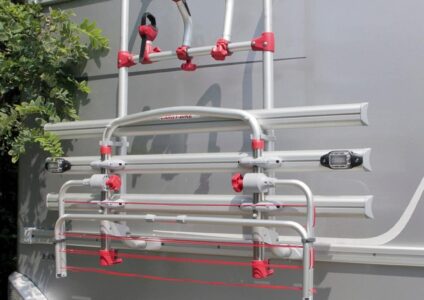 Die schöne Art zu trocknen! Neuartiger Wäscheständer, der sich an den Auflagebügel der meisten Fahrradträger mit 35 mm Rohre anbringen läßt. Die Endstücke haken sich an den Rohren des Auflagebügels ein und der Ständer läßt sich durch Einrasten ohne Mühe montieren. Das Reisen mit dem Ständer ist dank der klappbaren, innovativen Struktur im geschlossenen Zustand möglich. Ausgeliefert mit Plastikseilen für die aufzuhängenden Textilien und mit Feststellschraube zum Fixieren. Wird ohne bohren an die…