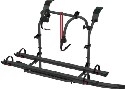 Für Fahrzeuge mit Hochdach (High Roof). Das kalandrierte Profil, das der Form des Fahrzeugs folgt, sorgt für eine optimale Haftung am unteren Teil der Heckklappe. Technische Daten: Farbe: schwarz Fahrzeugmodell: Ford Transit Custom Nugget / Nugget Plus ab Baujahr 2012 Dachform: Hochdach (Highroof) Für Freizeitfahrzeug: Bus max. E-Bikes: 2 max. Räder: 3 Tragfähigkeit: 50 kg Material: Aluminium Breite: 156 cm Höhe: 80 cm Tiefe: 60 cm Lieferumfang Fahrradträger: 1 Bike-Block Pro 1 schwarz, 1 Bike-Block Pro…