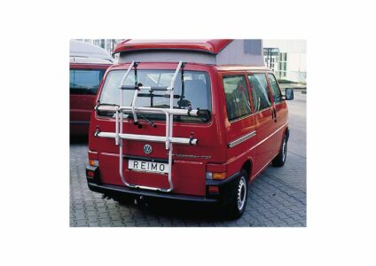Fahrrad-Heckträger für VW T4 Heckklappe – Reimo Exclusiv Der preiswerte Komfortfahrradträger Grundausstattung für 2 Fahrräder. Für VW T4 ab Bj. 1996 (ohne Stoßstangenabstützung). Abstand: Wand/Klappe 63 cm ausgeklappt und 12 cm hochgeklappt. Montage ohne Bohren aus Aluminium Schrauben aus Edelstahl Technische Daten: Grundausstattung für 2 Fahrräder Maximal aufrüstbar bis 3 Fahrräder Maximale Tragkraft: 50 Kg Maße: Breite: 64cm, Höhe: 145cm Gewicht: 7,4kg Lieferumfang: 1 Carry Bike T4 Fahrradträger 2…