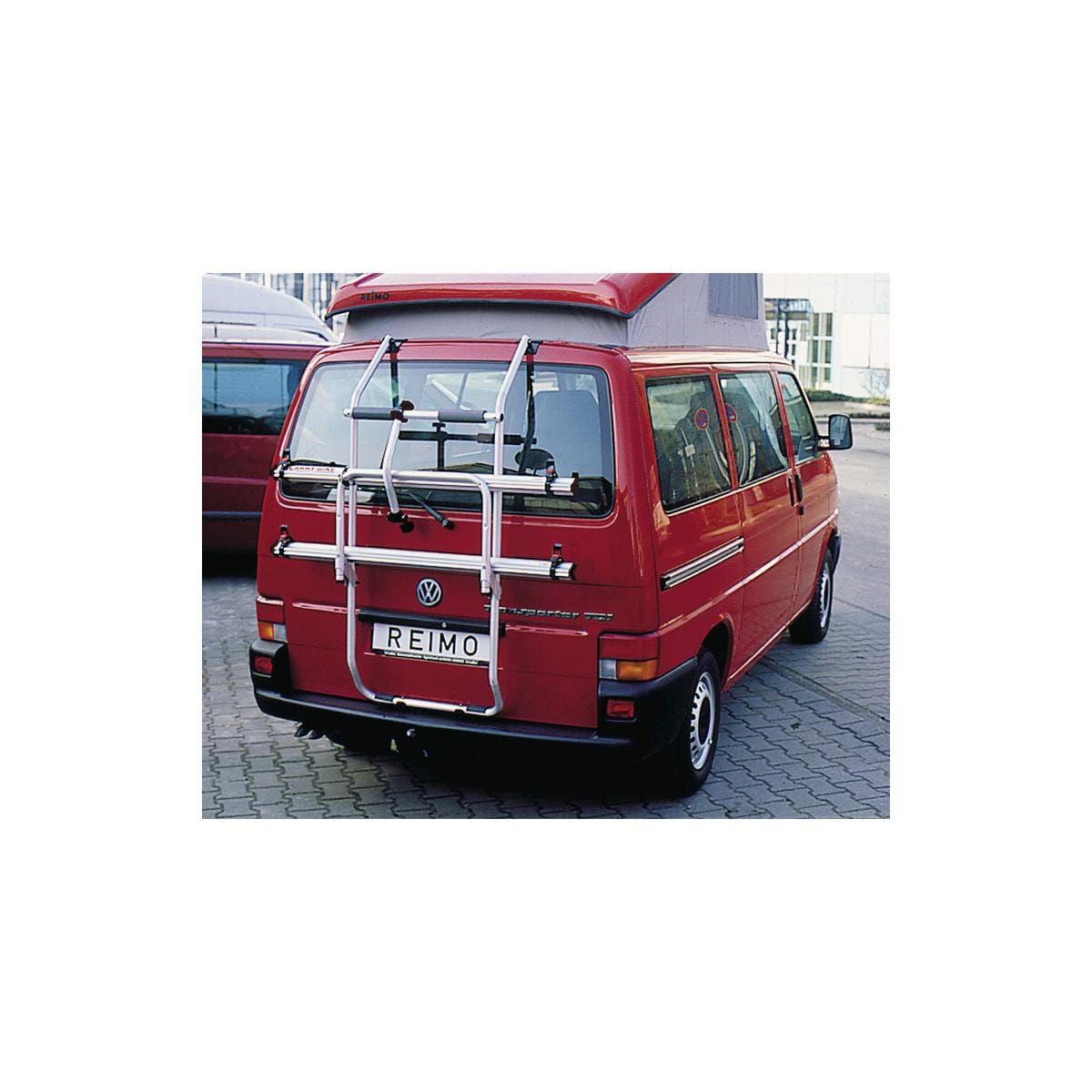 Fahrrad-Heckträger für VW T4 Heckklappe – Reimo Exclusiv Der preiswerte Komfortfahrradträger Grundausstattung für 2 Fahrräder. Für VW T4 ab Bj. 1996 (ohne Stoßstangenabstützung). Abstand: Wand/Klappe 63 cm ausgeklappt und 12 cm hochgeklappt. Montage ohne Bohren aus Aluminium Schrauben aus Edelstahl Technische Daten: Grundausstattung für 2 Fahrräder Maximal aufrüstbar bis 3 Fahrräder Maximale Tragkraft: 50 Kg Maße: Breite: 64cm, Höhe: 145cm Gewicht: 7,4kg Lieferumfang: 1 Carry Bike T4 Fahrradträger 2…