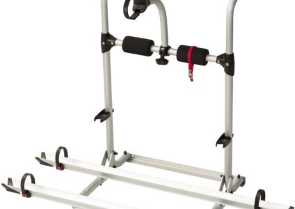 Universeller Reisemobil-Fahrradträger. Passt sich an die gängigsten Reisemobilmodelle durch die längere flexible Einstellung in der Höhe an.Universeller Fahrradträger für die meisten Reisemobilmodelle geeignet. Passt sich an die gängigsten Fahrzeuge durch die längere flexible Einstellung in der Höhe an. Die solide und leichte Struktur, aus eloxiertem Aluminium, kann von 80 cm auf 150 cm reguliert werden. Der UL wird an die Heckwand des Wohnmobiles angebracht. Technische Daten: Farbe: silber Montage:…