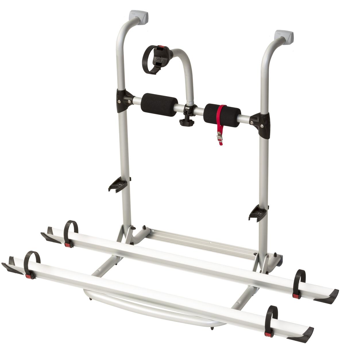 Universeller Reisemobil-Fahrradträger. Passt sich an die gängigsten Reisemobilmodelle durch die längere flexible Einstellung in der Höhe an.Universeller Fahrradträger für die meisten Reisemobilmodelle geeignet. Passt sich an die gängigsten Fahrzeuge durch die längere flexible Einstellung in der Höhe an. Die solide und leichte Struktur, aus eloxiertem Aluminium, kann von 80 cm auf 150 cm reguliert werden. Der UL wird an die Heckwand des Wohnmobiles angebracht. Technische Daten: Farbe: silber Montage:…
