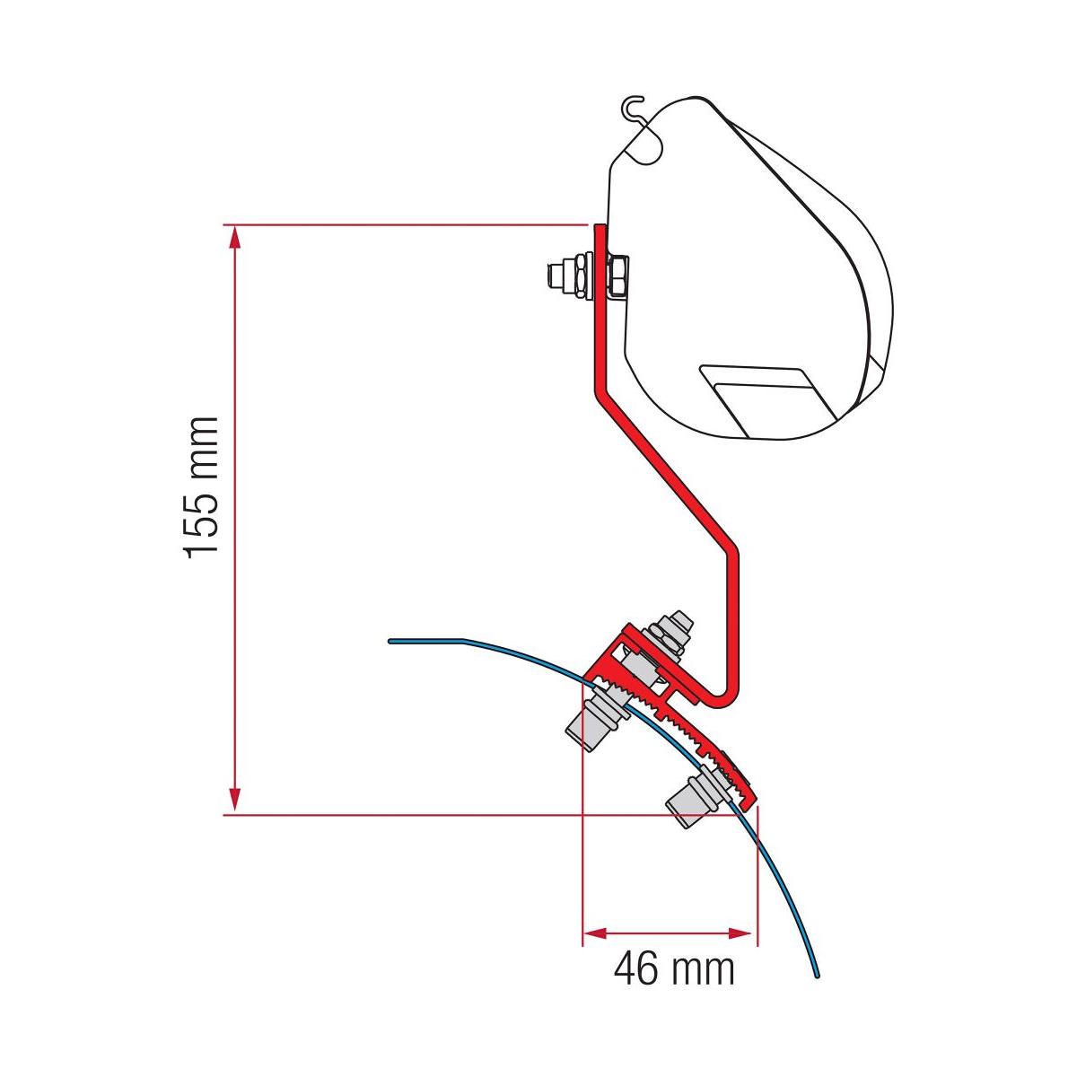 Markisenhalterung zur Montage der Markise am Fahrzeug (Reisemobil, Caravan, Kastenwagen oder Camping-Bus) für Markisentyp: F35 für Fahrzeugmodell: VW Caddy – H1 – L1 – Für Modelle mit Aufstelldach, ab Bj. 2016 Breite: 2x 12 cm Gewicht: 1.5 kg Lieferumfang: 2 Adapterplatten je 12cm