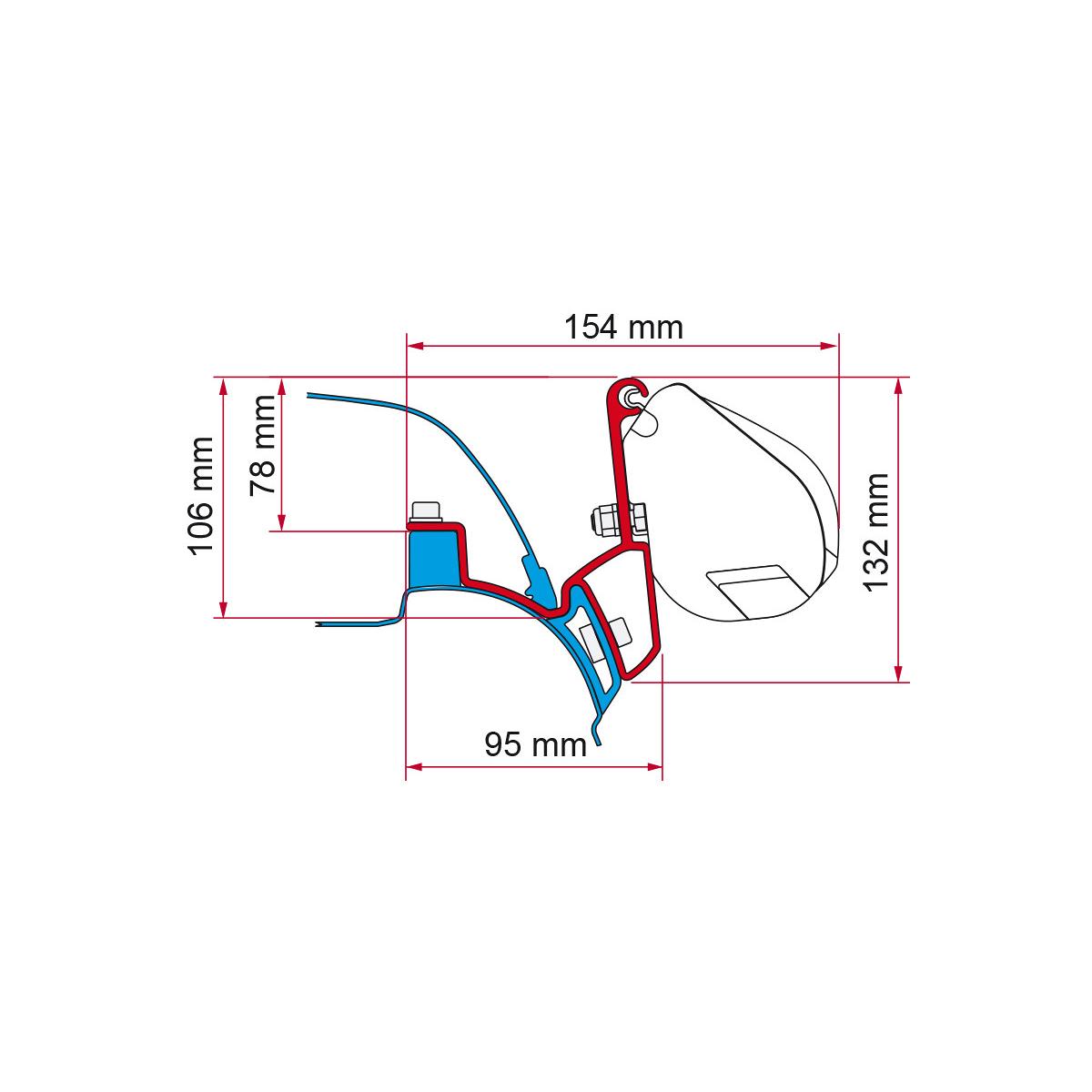 Markisenadapter zur Montage der Markise am Fahrzeug (Reisemobil, Caravan, Kastenwagen oder Camping-Bus) für Markisentyp: F35 für Fahrzeugmodell: VW T5/T6 California (T5 bis Bj. 2014, T6 ab Bj. 2014) Breite: 2x 12 cm Gewicht: 1.2 kg Inhalt: 2 Halteplatten Fiamma Art.Nr.98655-748