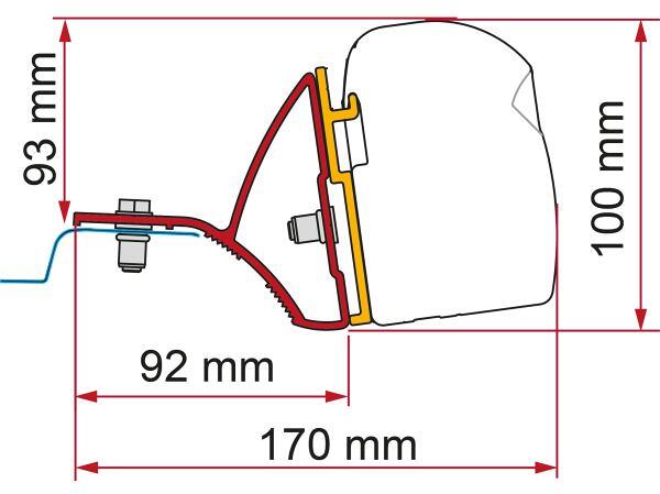Die Montage des Adapters erfolgt an den werkseitig vorgesehenen Befestigungspunkten am Dach. Dadurch ist kein Bohren erforderlich und der Adapter kann schnell angebracht oder abgenommen werden. Technische Daten: für Markisentyp: F43van für Fahrzeugmodell: Renault Trafic ab Bj. 2014 / Fiat Talento ab Bj. 2016 / Nissan NV300 ab Bj. 2016 Farbe: schwarz Inhalt: 2 Halteplatten Hinweis: Bei der gelben Kennzeichnung auf der Skizze handelt es sich um die Standardhalterung, welche serienmäßig bei der Markise…