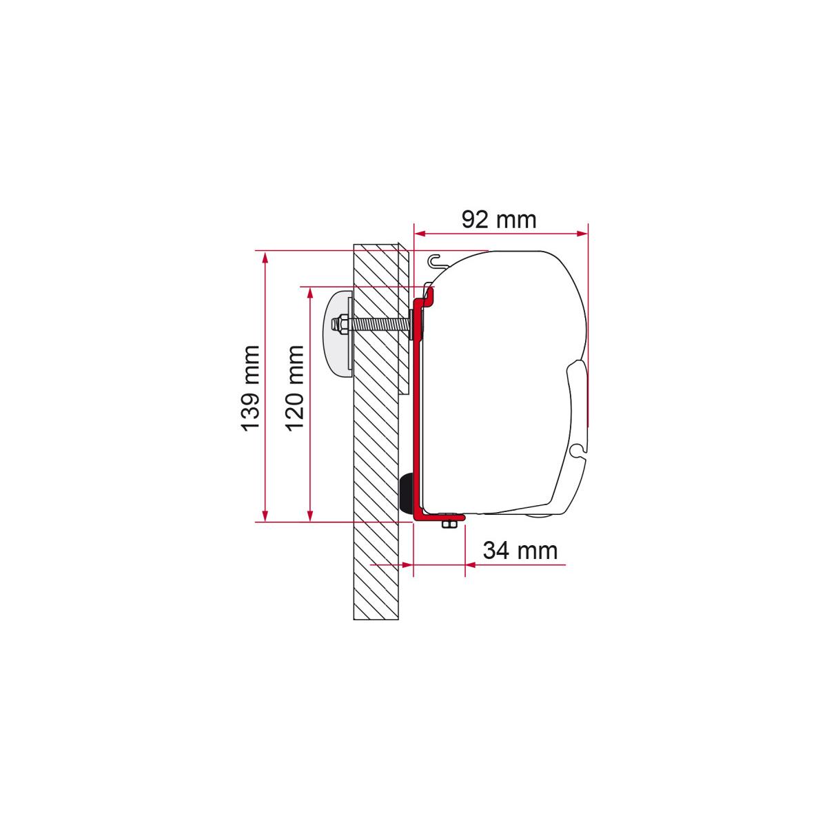 Markisenhalterung zur Montage der Markise am Fahrzeug (Reisemobil, Caravan, Kastenwagen oder Camping-Bus) für Markisentyp: F45S, F45L (sowie ältere Modelle F45i / F45iL / F45Ti / F45TiL / F70) für Fahrzeugmodell: Chausson Allegro/Challenger Eden Gewicht: 3kg Inhalt: 2 Halterungen à 8cm + 1 Halterung à 40cm Fiamma Art.Nr. 98655-258