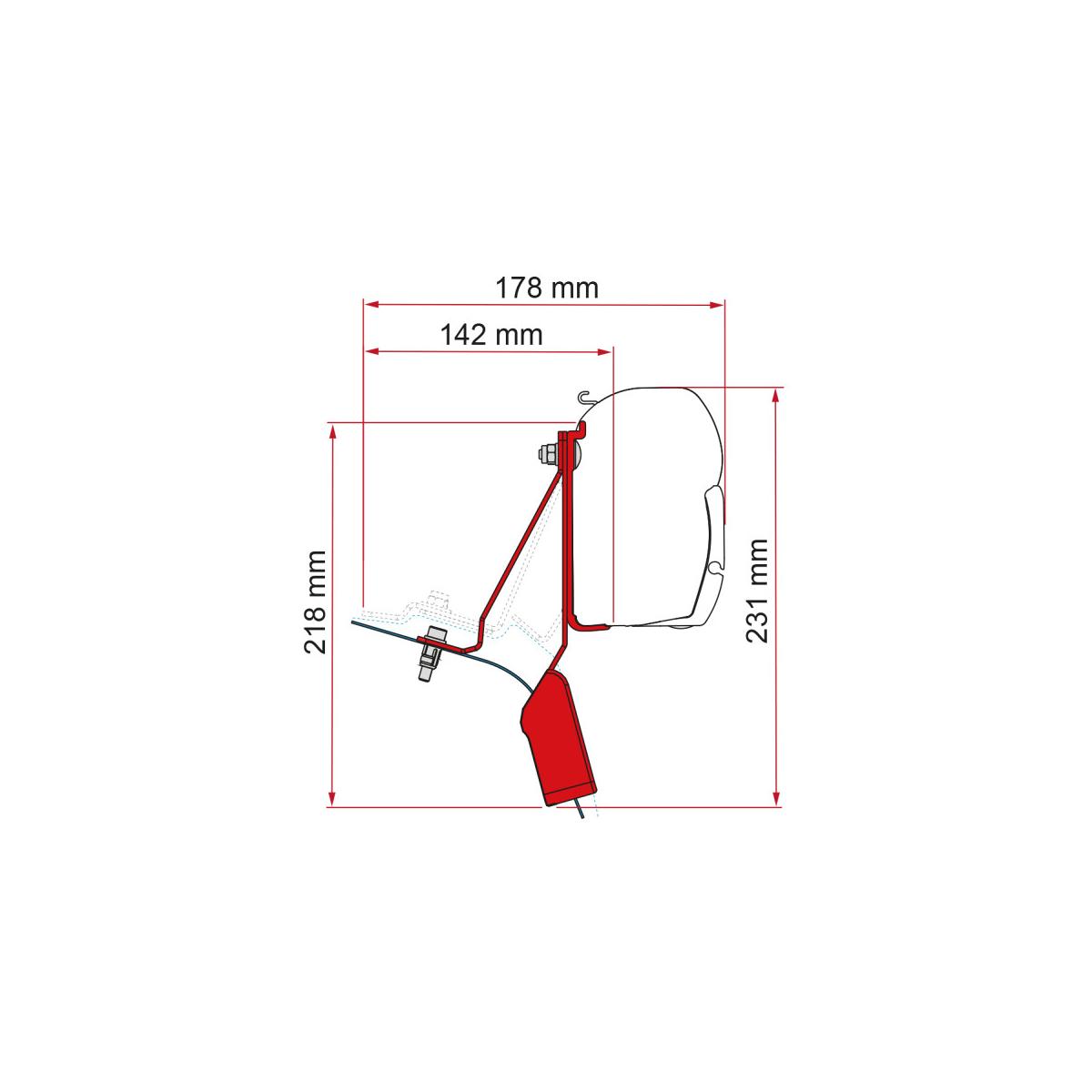 Markisenhalterung zur Montage der Markise am Fahrzeug (Reisemobil, Caravan, Kastenwagen oder Camping-Bus) für Markisentyp: F45S, F45L (sowie ältere Modelle F45i / F45iL / F45Ti / F45TiL / F70) für Fahrzeugmodell: Westfalia Ford Nugget, Ford Custom Nugget mit Aufstelldach (H1 – L1) ab Bj. 2015 Packmaß: (B x T x H): 20 × 14 × 16 cm Gewicht: 1.6 kg Inhalt: 2 Halterungen à 8 cm Fiamma Art.Nr. 98655Z114